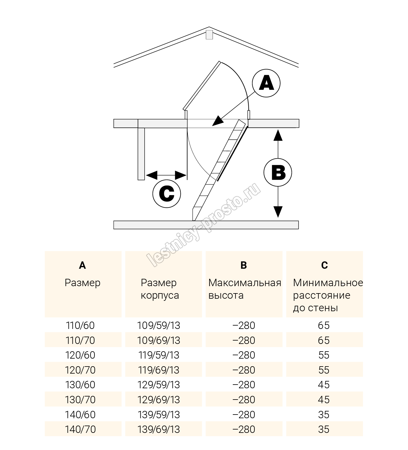 Чердачная складная лестница MINKA TRADITION 60×120 см, h-280 см