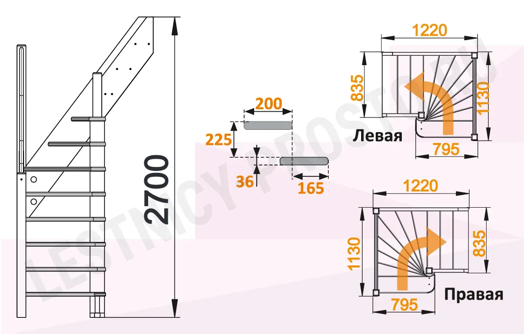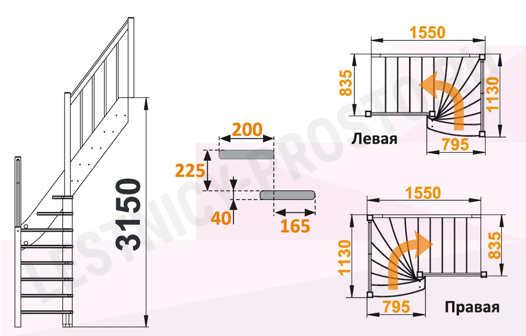 | Лестница из сосны ЛС-91М+1 ступень сверху |