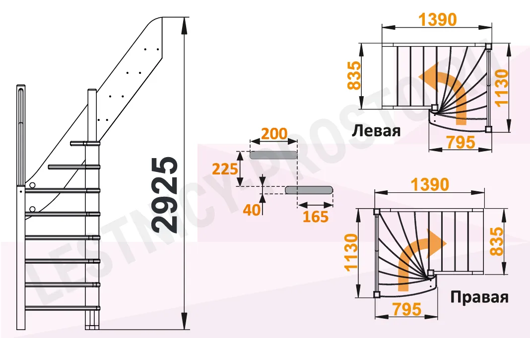| Лестница из сосны ЛС-91М+2 ступени сверху |