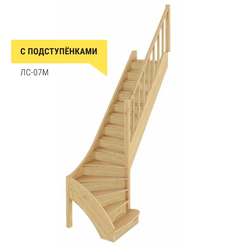 Базовый комплект включает в себя деревянные элементы лестницы и ограждения без какого-либо покрытия.
