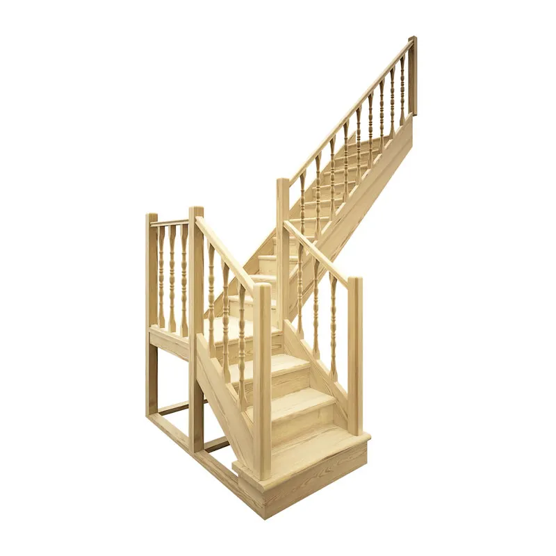 Базовый комплект включает в себя деревянные элементы лестницы и ограждения без какого-либо покрытия.