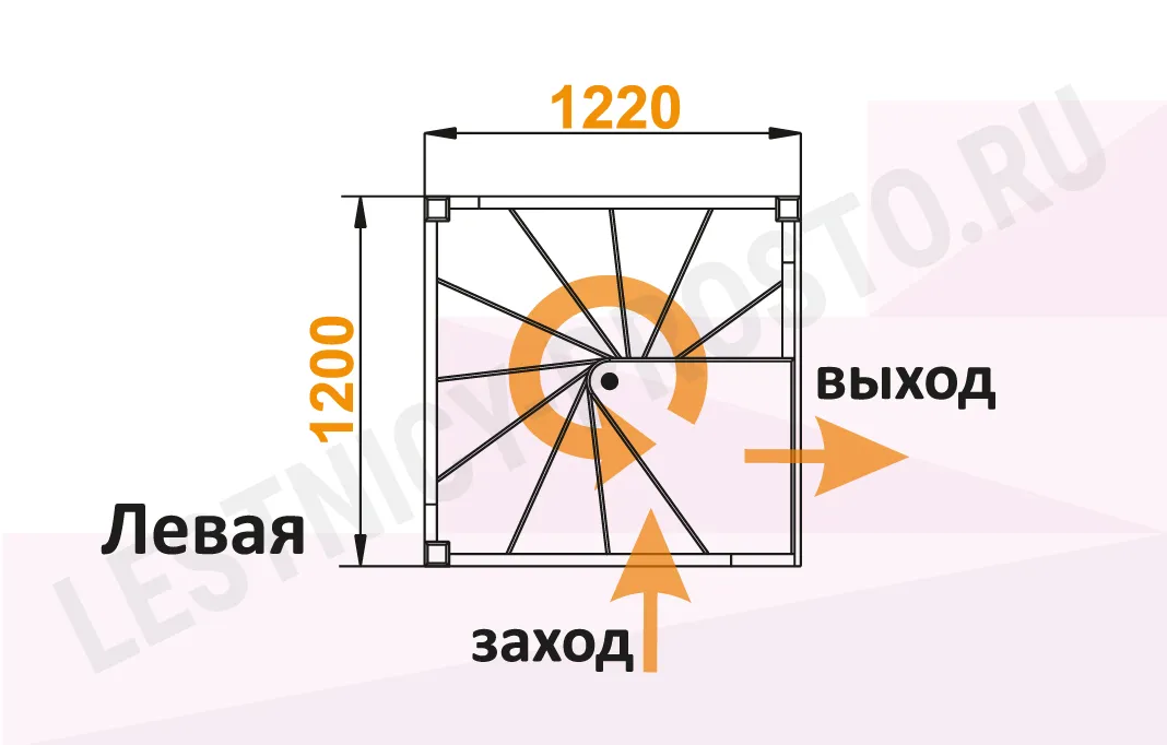 Схема лестницы ЛС-1.2хм с поворотом налево