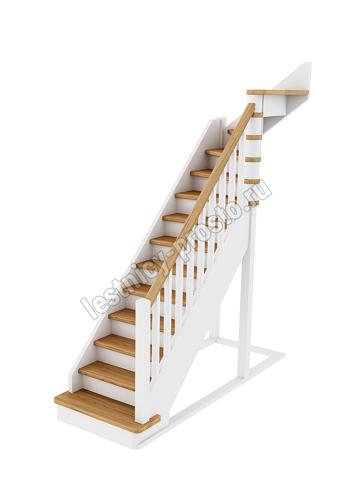 Базовый комплект включает в себя деревянные элементы лестницы и ограждения без какого-либо покрытия.