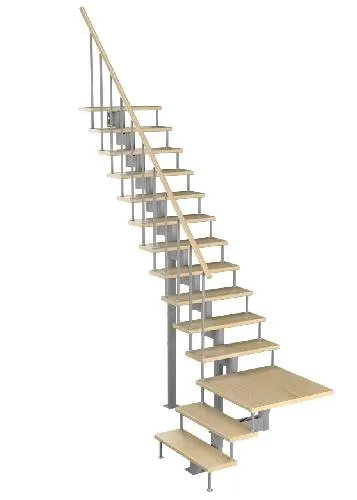 Под заказ модель можно дополнить подступёнками, поворотные ступени заменить на площадку, добавить промежуточный марш, пригласительную ступень и т.п.