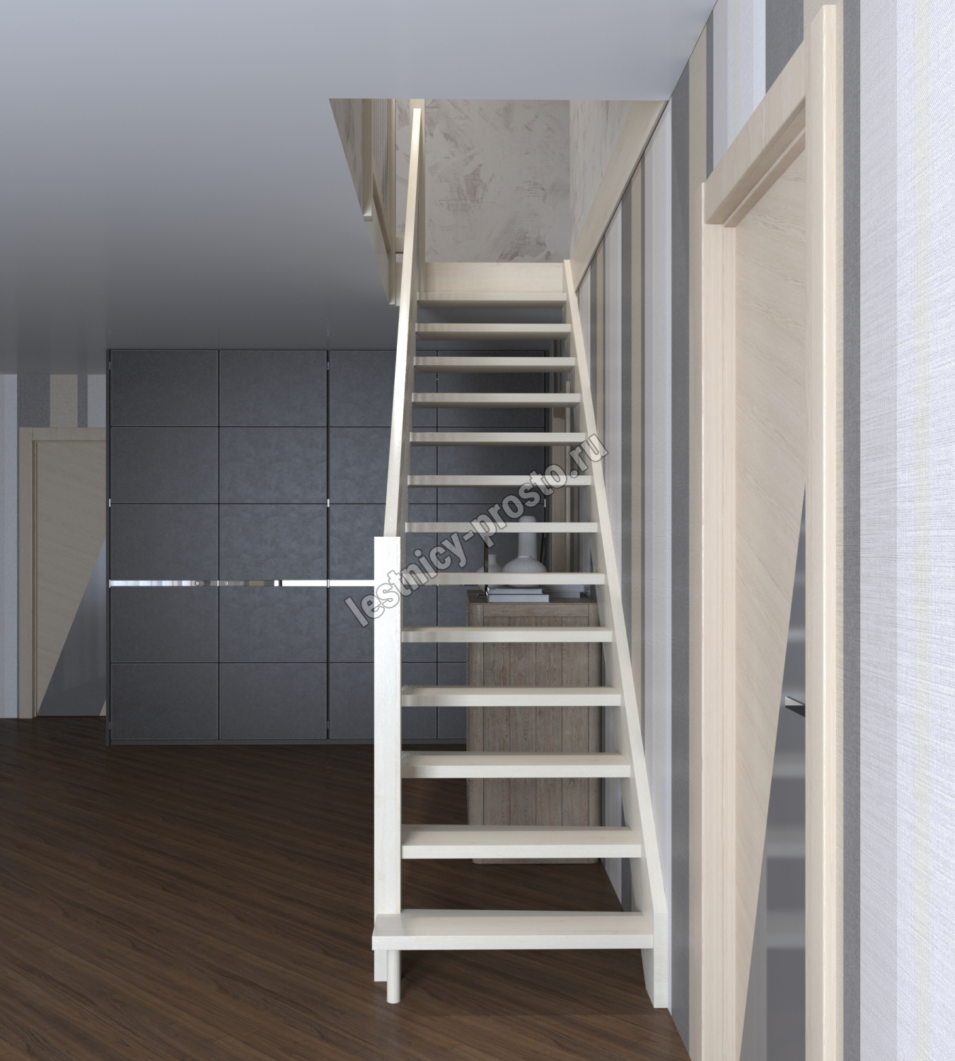 Элегантная современная лестница из сосны.