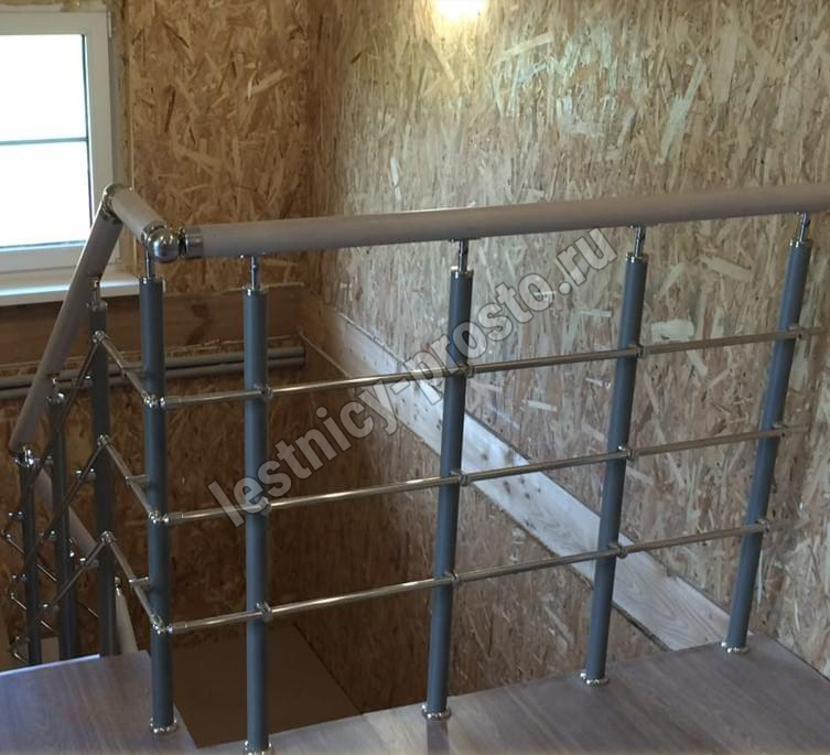 Комплект ограждений для П-образной лестницы PROSTO MONO из 13 ступеней.