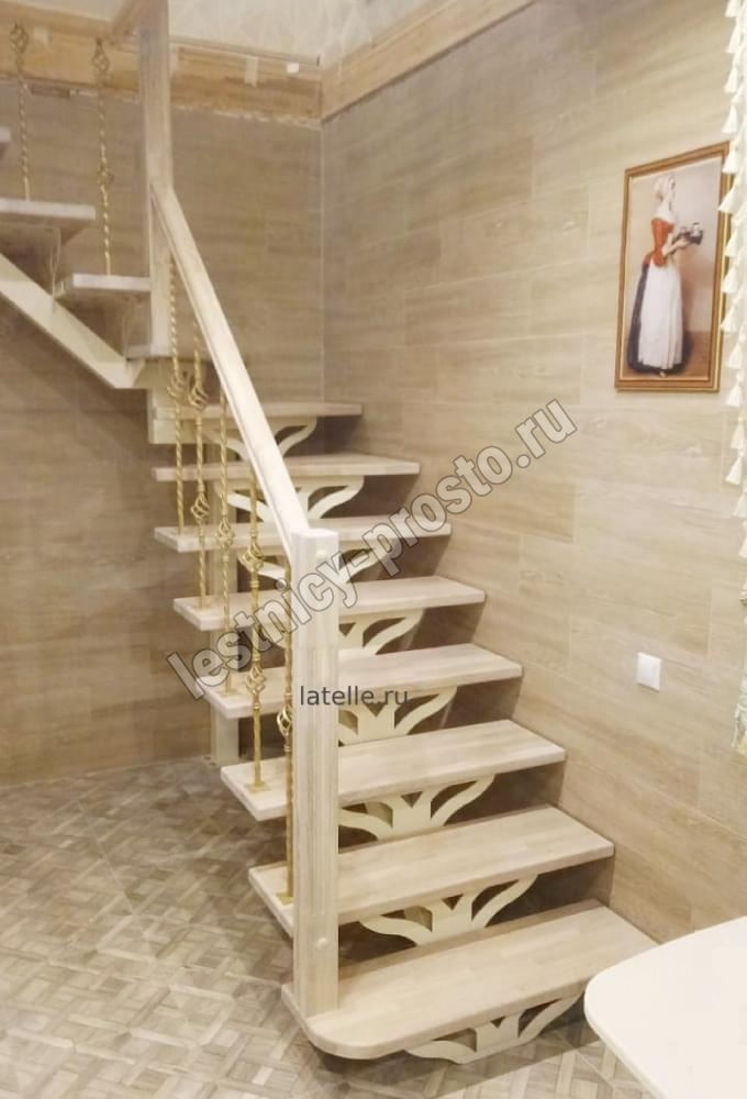 Лестница PROSTO MONO Г-образная h315 см, ступени бук