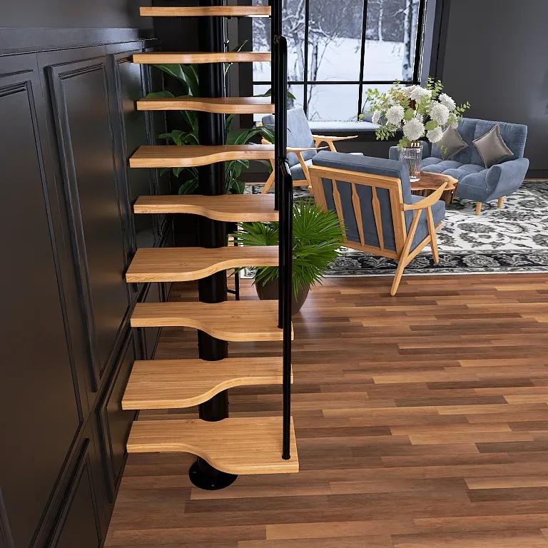 Конструкция представляет собой стальной монокосоур, на который крепятся ступени из выбранной породы дерева.