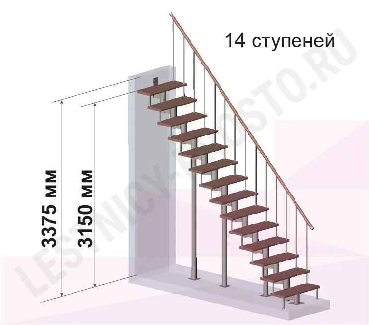 Модульная лестница PROSTO Module прямая, h315, бук |