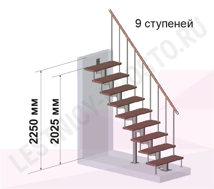 Модульная лестница PROSTO Module прямая, h225, бук |