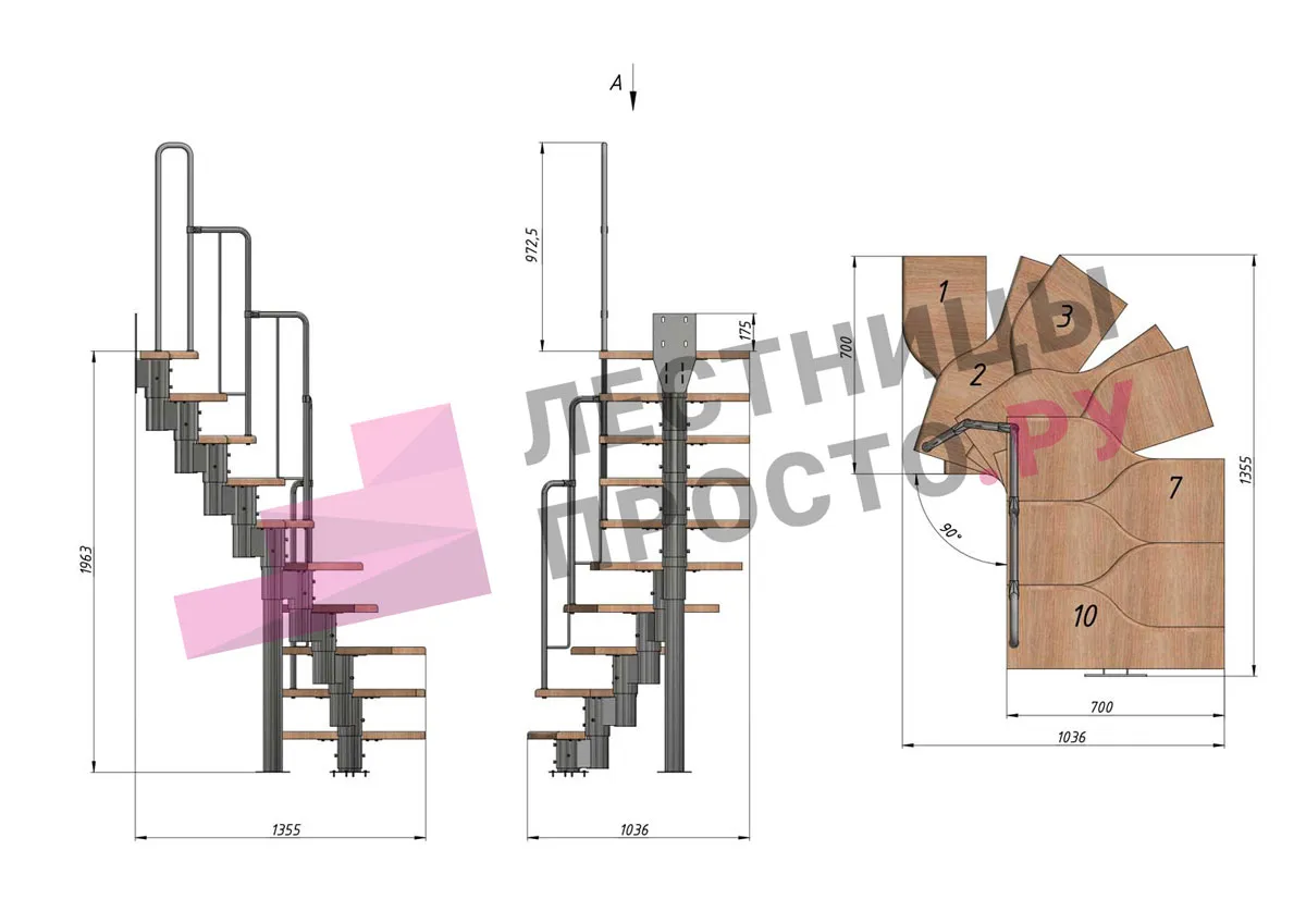 Высота лестницы 1800 - 2640 (10 ступеней) мм