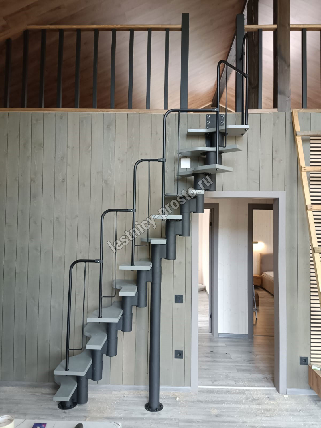 Лестница Prosto Urban Black гусиный шаг 600 мм, h198-288 см (11 ступеней), дуб