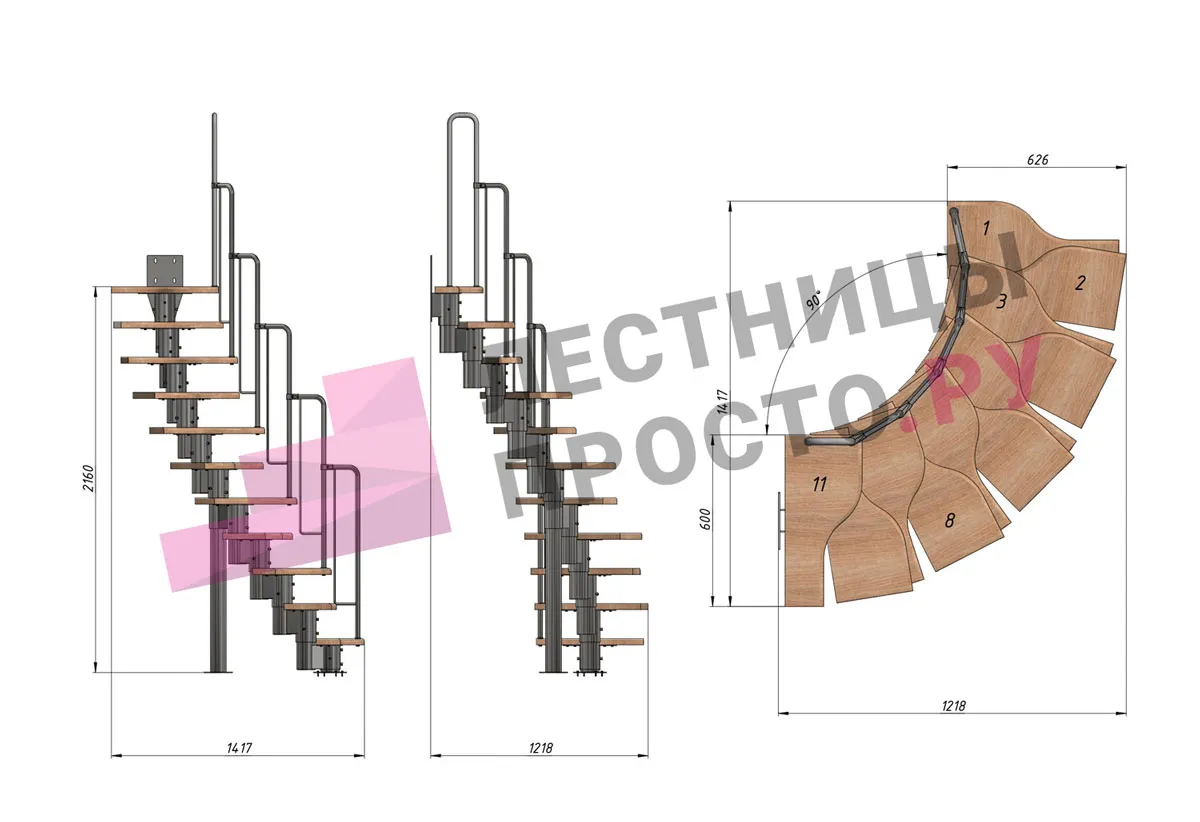Высота лестницы 1980 - 2880 (11 ступеней) мм