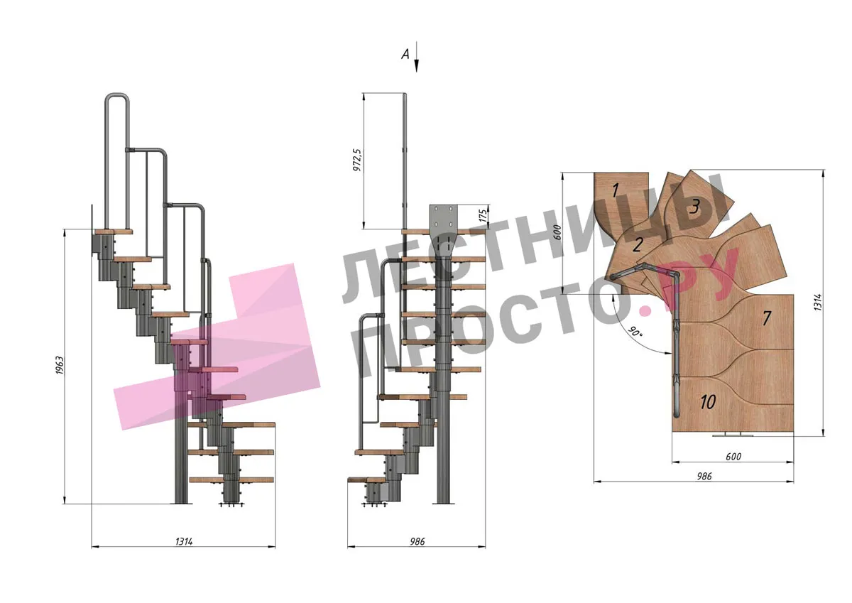 - Регулируемый по высоте в пределах 180-240 мм модуль. Большой диаметр и толщина металла деталей обеспечивают жесткость и прочность конструкции. Регулировка каждого модуля по высоте позволяет легко приспособить лестницу под ваше помещение.