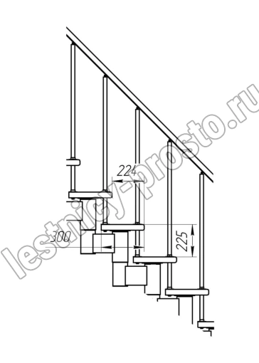 Модульная лестница Фаворит 225 2250-2350, Серый, Сосна, Крашеная