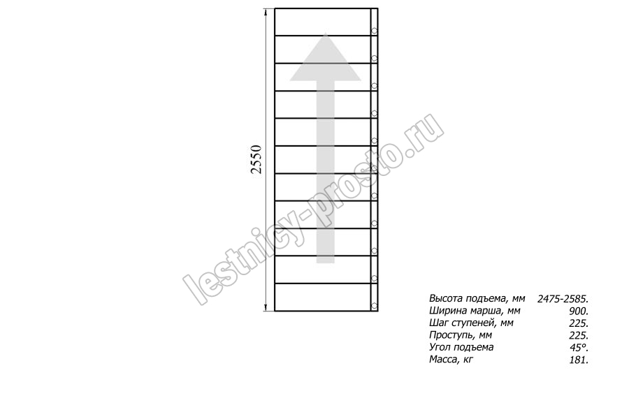 Модульная лестница Стандарт 2475-2585, Серый, Лиственница, Крашеная