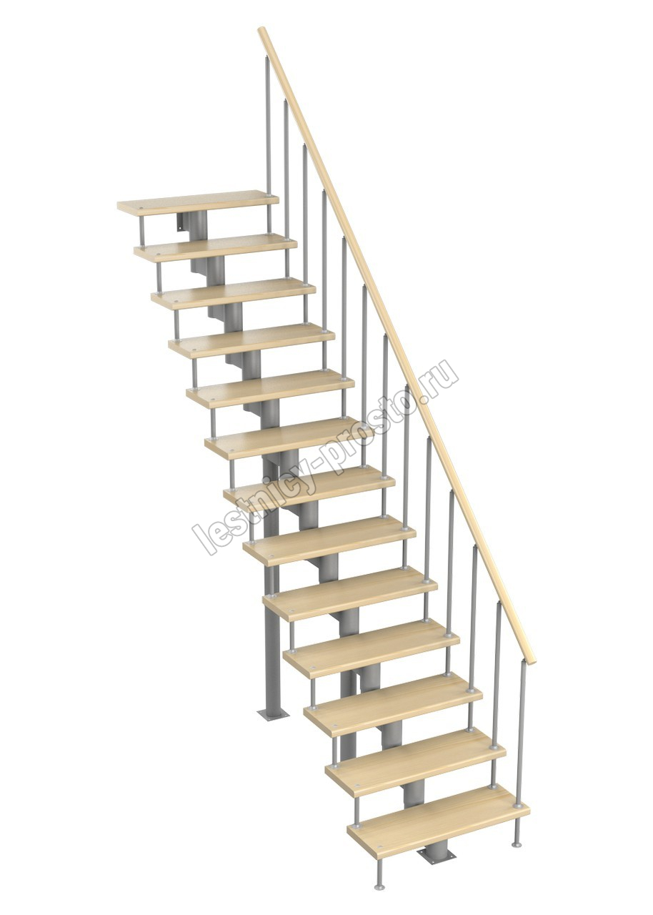 Модульная лестница Стандарт 3150-3290, Серый, Сосна, Нержавеющая сталь