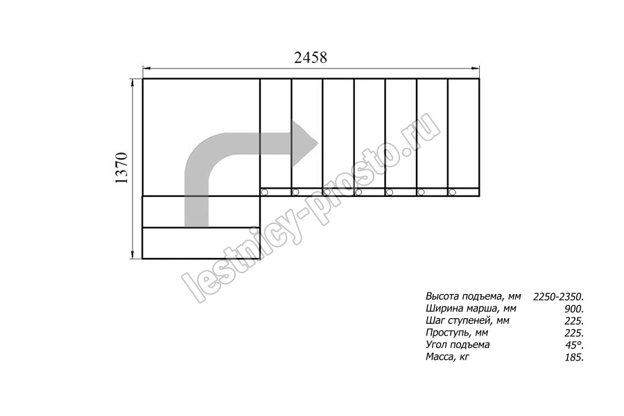 Модульная лестница Статус 225 2250-2350, Черный, Лиственница, Нержавеющая сталь