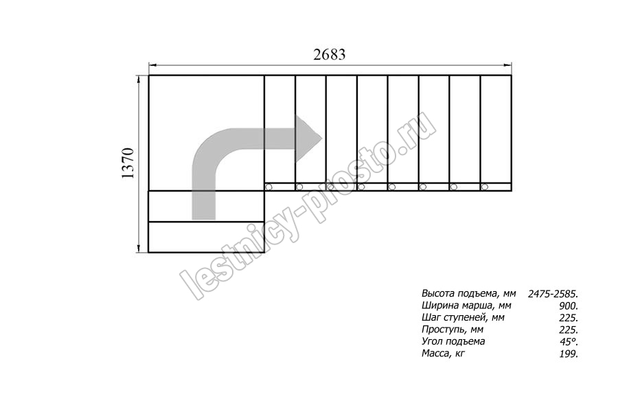 Модульная лестница Статус 225 2475-2585, Серый, Лиственница, Нержавеющая сталь