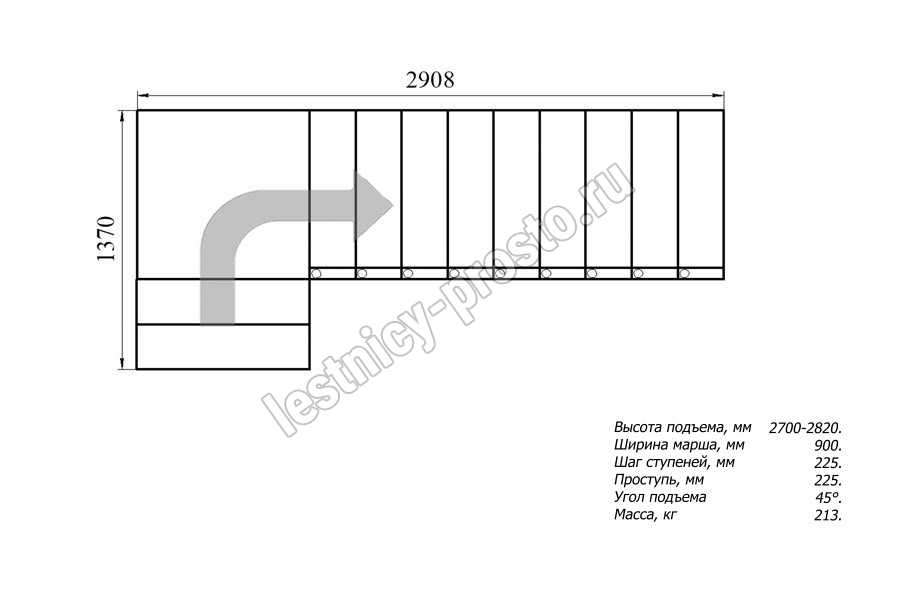 Модульная лестница Статус 225 2700-2820, Серый, Бук, Нержавеющая сталь