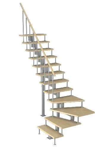 Модульная малогабаритная лестница Эксклюзив 2250-2475, Серый, Бук, Нержавеющая сталь