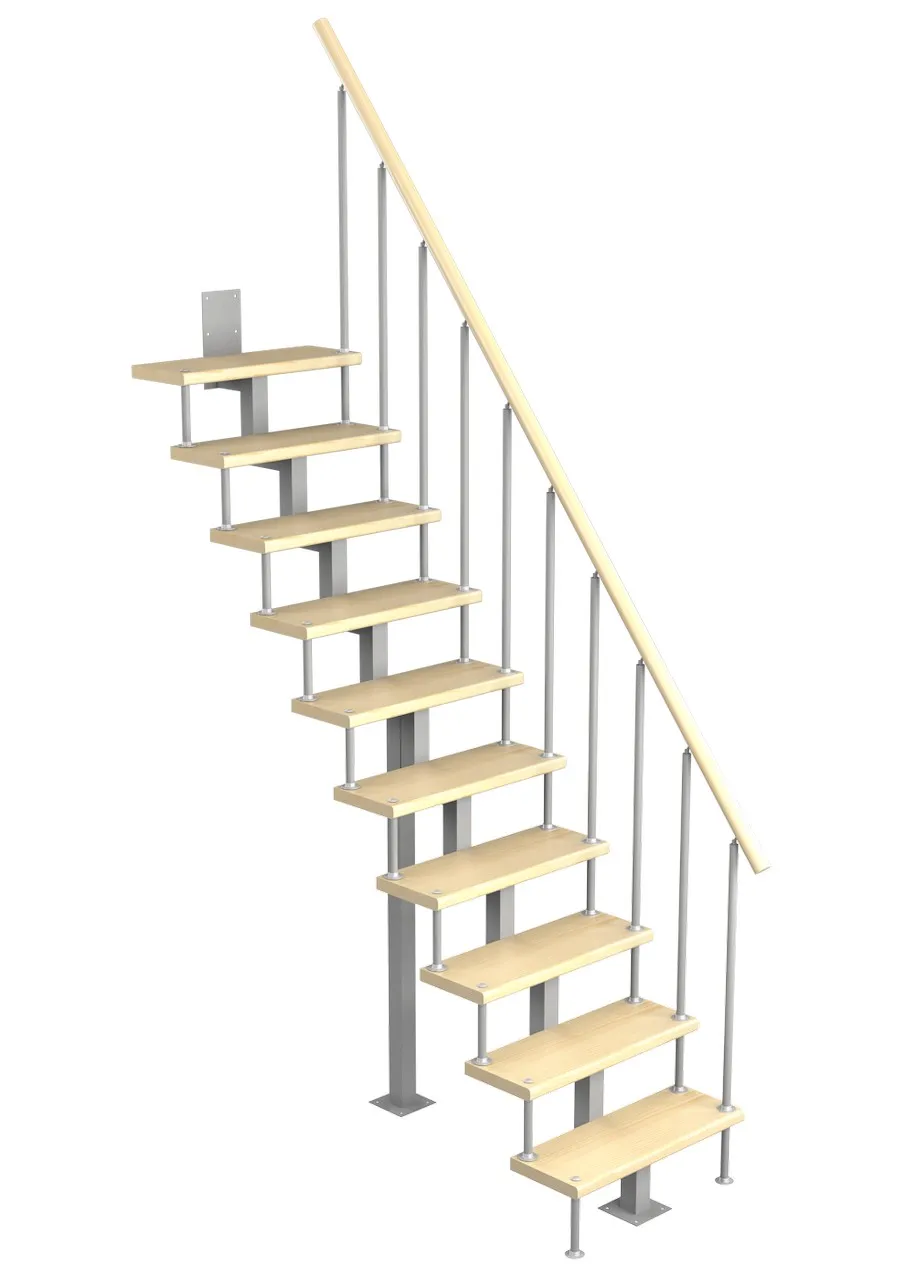 Модульная малогабаритная лестница Линия 2250-2475, Белый, Бук, Нержавеющая сталь