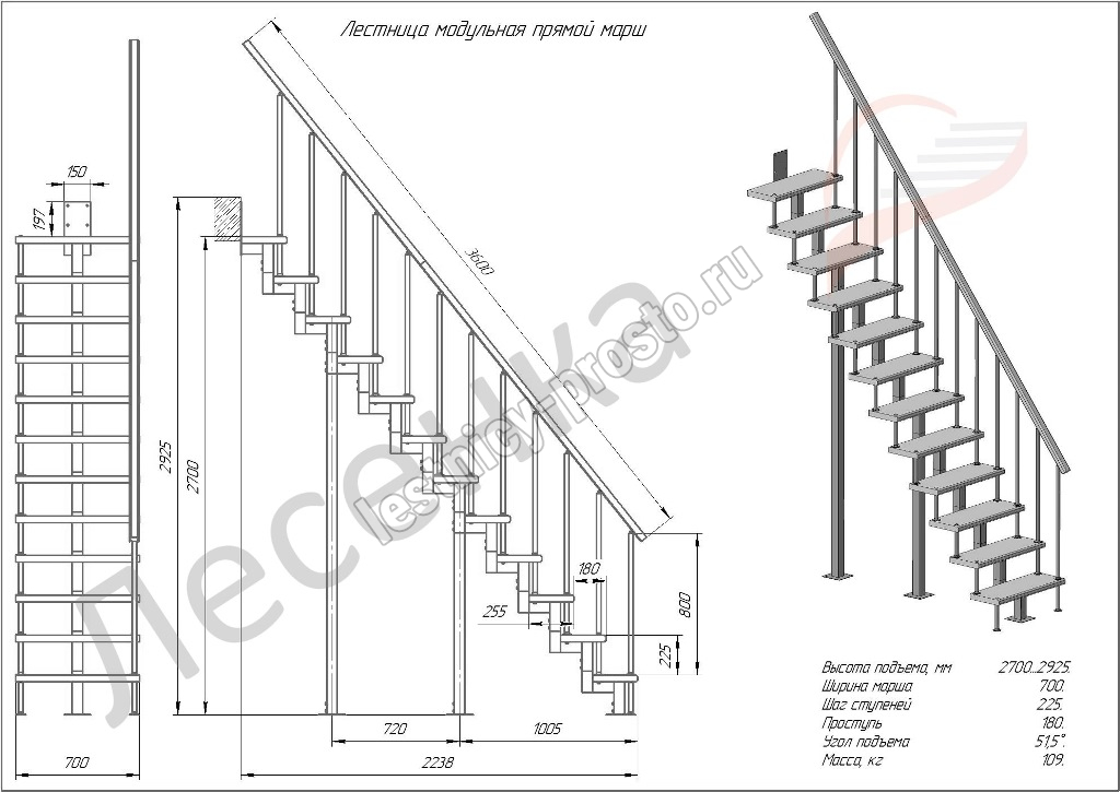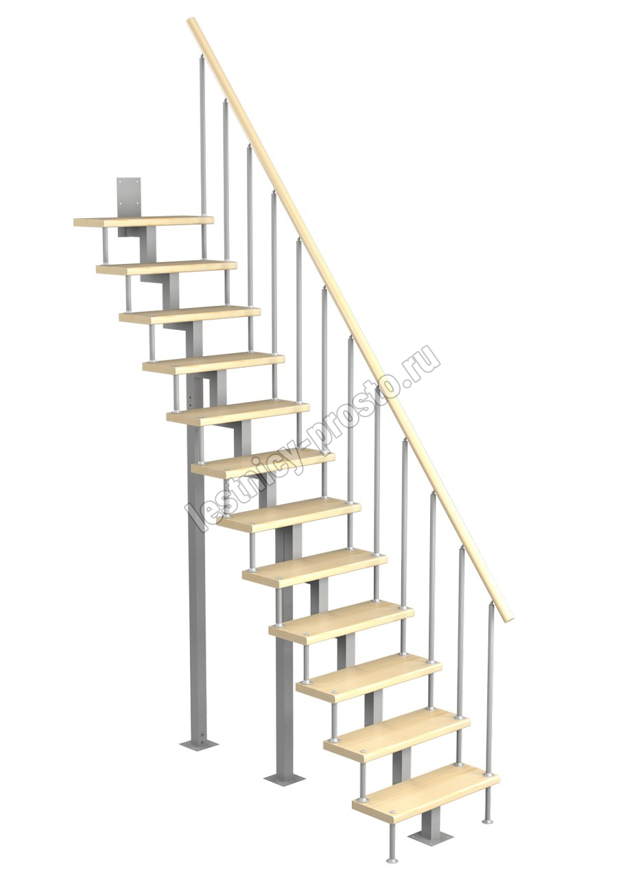 Модульная малогабаритная лестница Линия 2700-2925, Серый, Лиственница, Нержавеющая сталь
