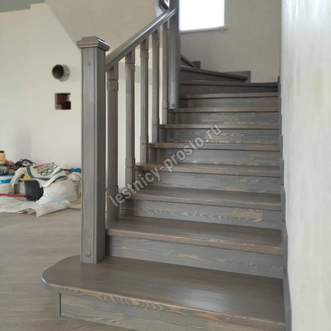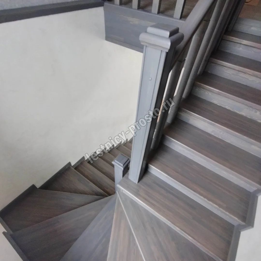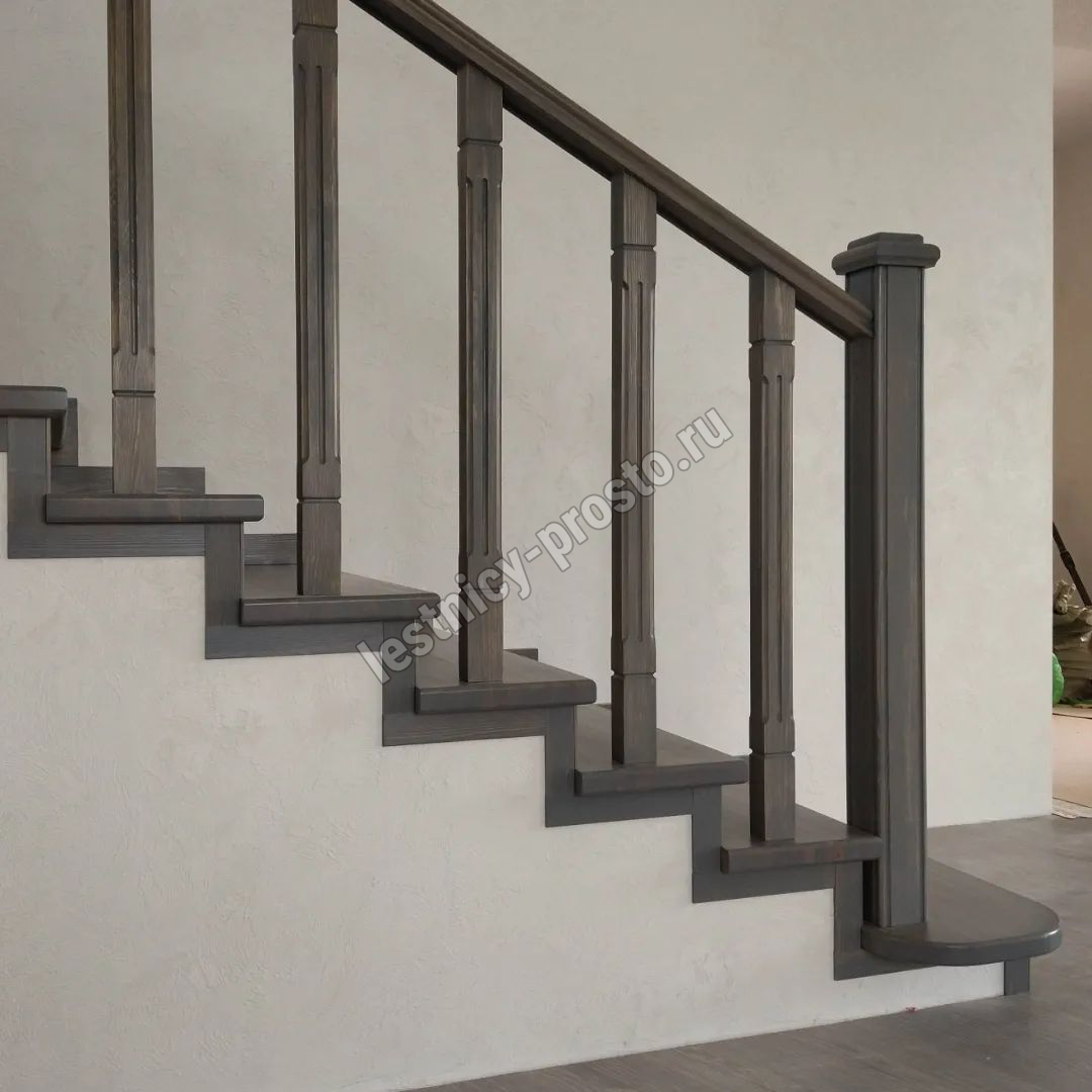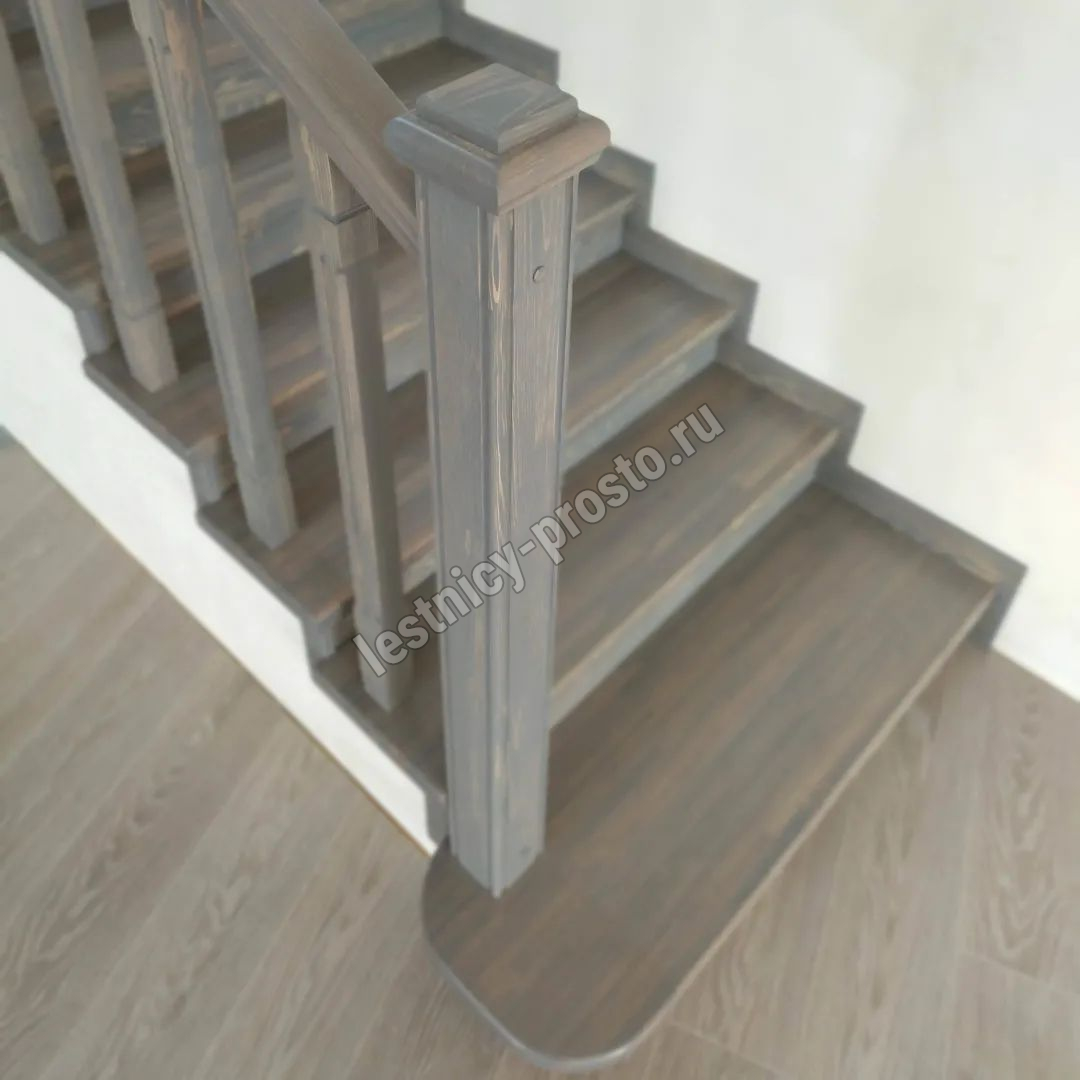 Ступени и поручень выполнены из срощенной лиственницы категории АВ.