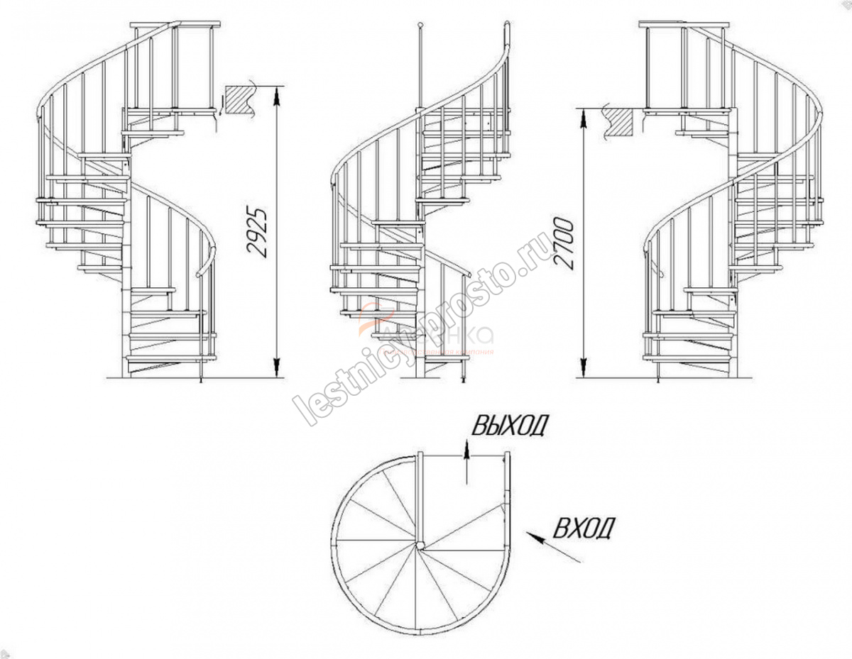Винтовая лестница ЛЕС-1,8 высота 2700-2925, Серый, Бук