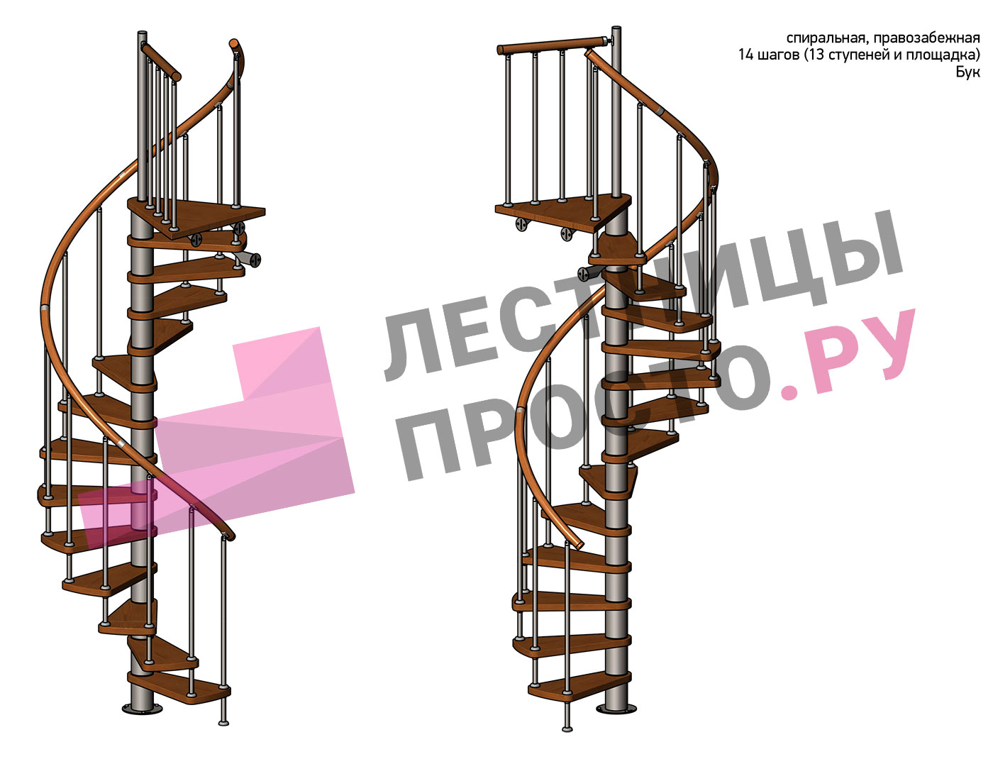 Правая, d=120см, 13 ступеней + площадка