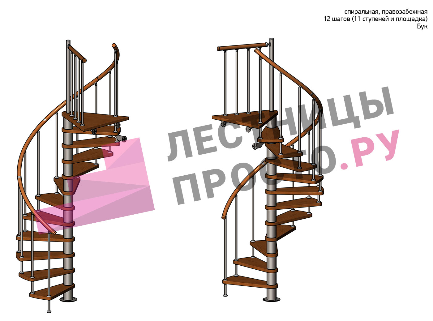 Правая, d=140см, 11 ступеней + площадка