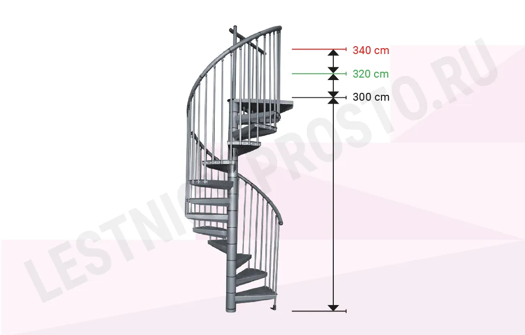 Благодаря возможности регулировать высоту шага с помощью пластиковых вставок (входят в базовый комплект), высоту лестницы можно варьировать в пределах от 2730 до 3000 мм. Ступени лестницы изготовлены со специальным, антискользящим рельефом.