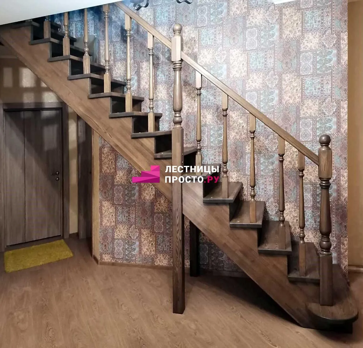 Лестница LP из сосны на второй этаж с поворотом на 180 градусов